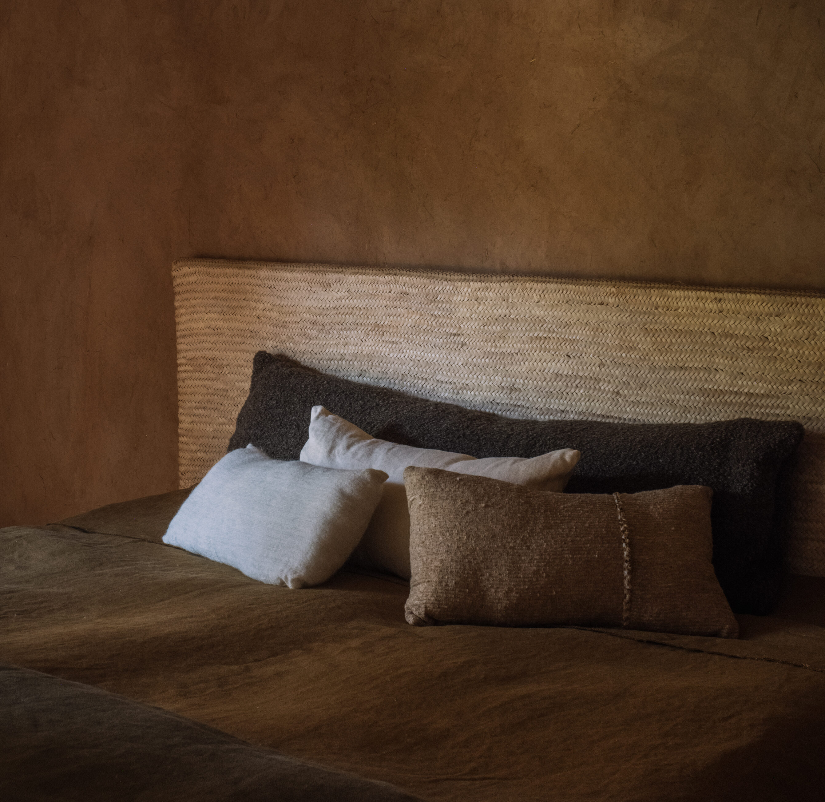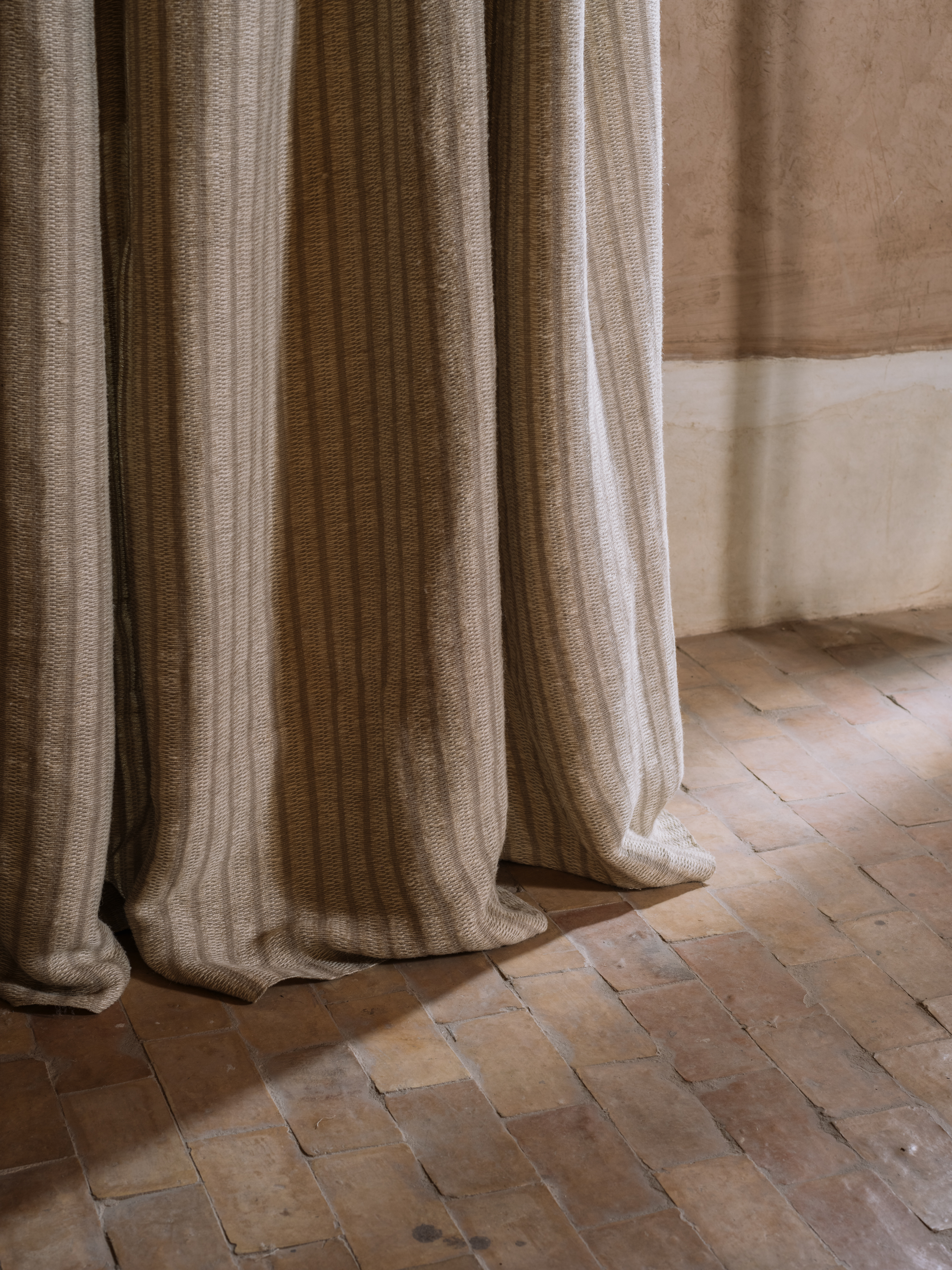Colours guide us from earth to horizon: desert sand, clay whites, saffron and spiced ochre, graduating towards burgundy and olive. Rust and indigo rest alongside earth and dark brown – rich, grounding shades that shift with light and deepen with age.