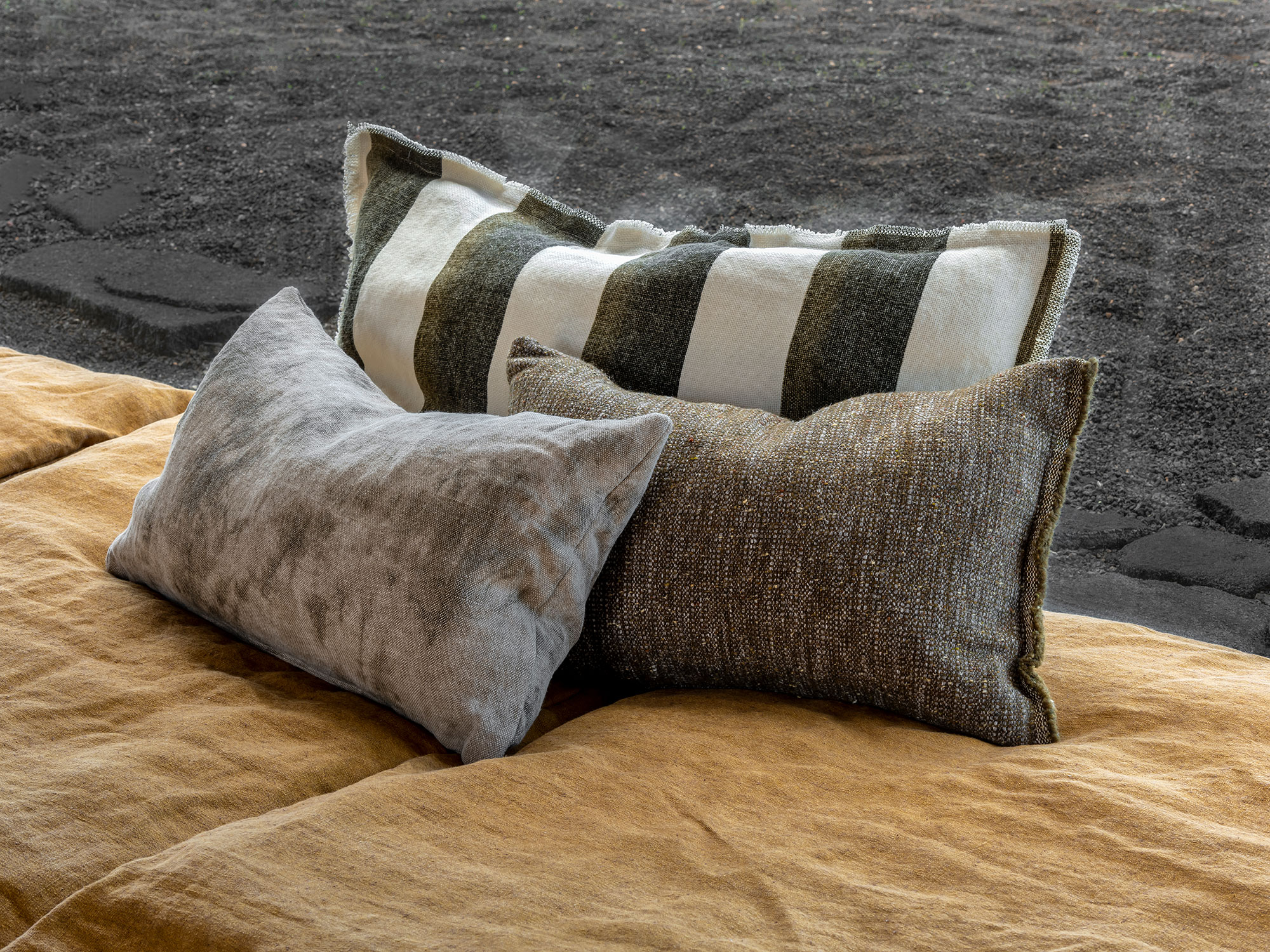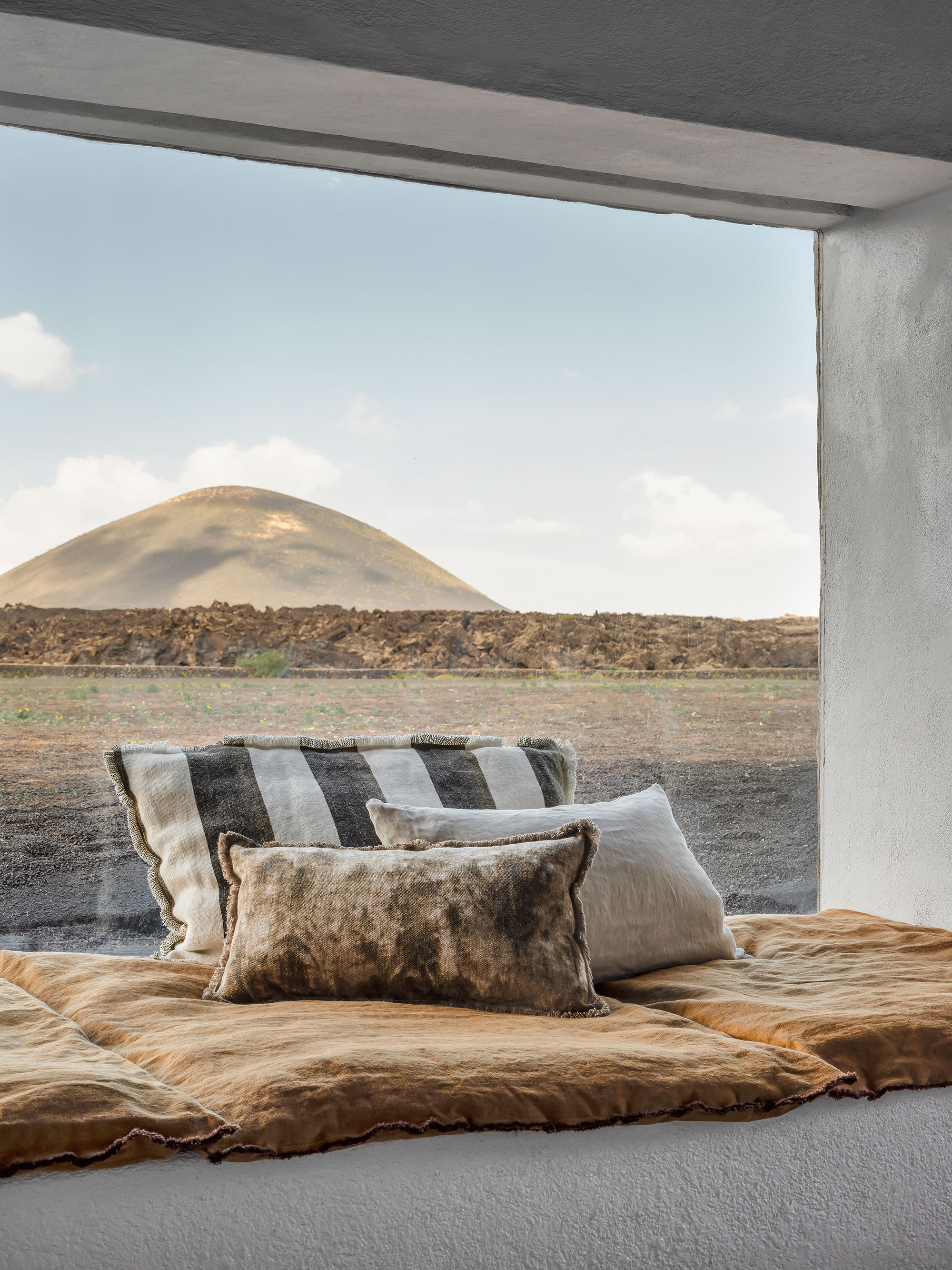 Designs Of The Time’s fabric collection Wilder invites you on an off-grid journey. Inspiration for these designs was drawn from every continent, producing earthy shades, natural textures and fabrics with a luxuriously organic vibe. The ideas behind this collection come from places with distinctive landscapes and striking organic surfaces. The colour palette is based on the first natural pigments used historically by humanity: yellow ochre, black and grey charcoal, blue abalone, brown umber, deep green…